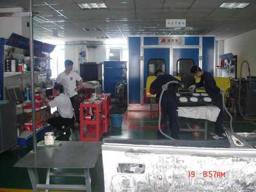 參觀龍神培訓中心的汽車鈑噴設備和工具