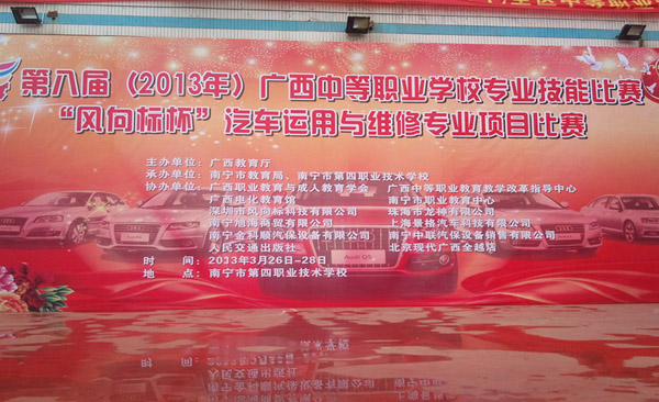 2013年3月28日,珠海龍神有限公司協(xié)辦的第八屆(2013年)全區(qū)中等職業(yè)學校專業(yè)技能比賽,“風向標”杯汽車運用與維修專業(yè)項目比賽廣西賽區(qū)在南寧市第四職業(yè)技術學校鳴鑼收兵,84人(42組)載譽而歸。