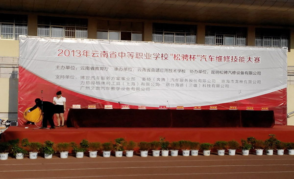 2013年4月27日,由云南省教育廳主辦,云南省曲靖應用技術學校承辦,昆明松騁汽修設備有限公司協(xié)辦,珠海龍神有限公司支持的“2013年云南省中等職業(yè)學校"松騁杯"汽車維修技能大賽”圓滿閉幕。